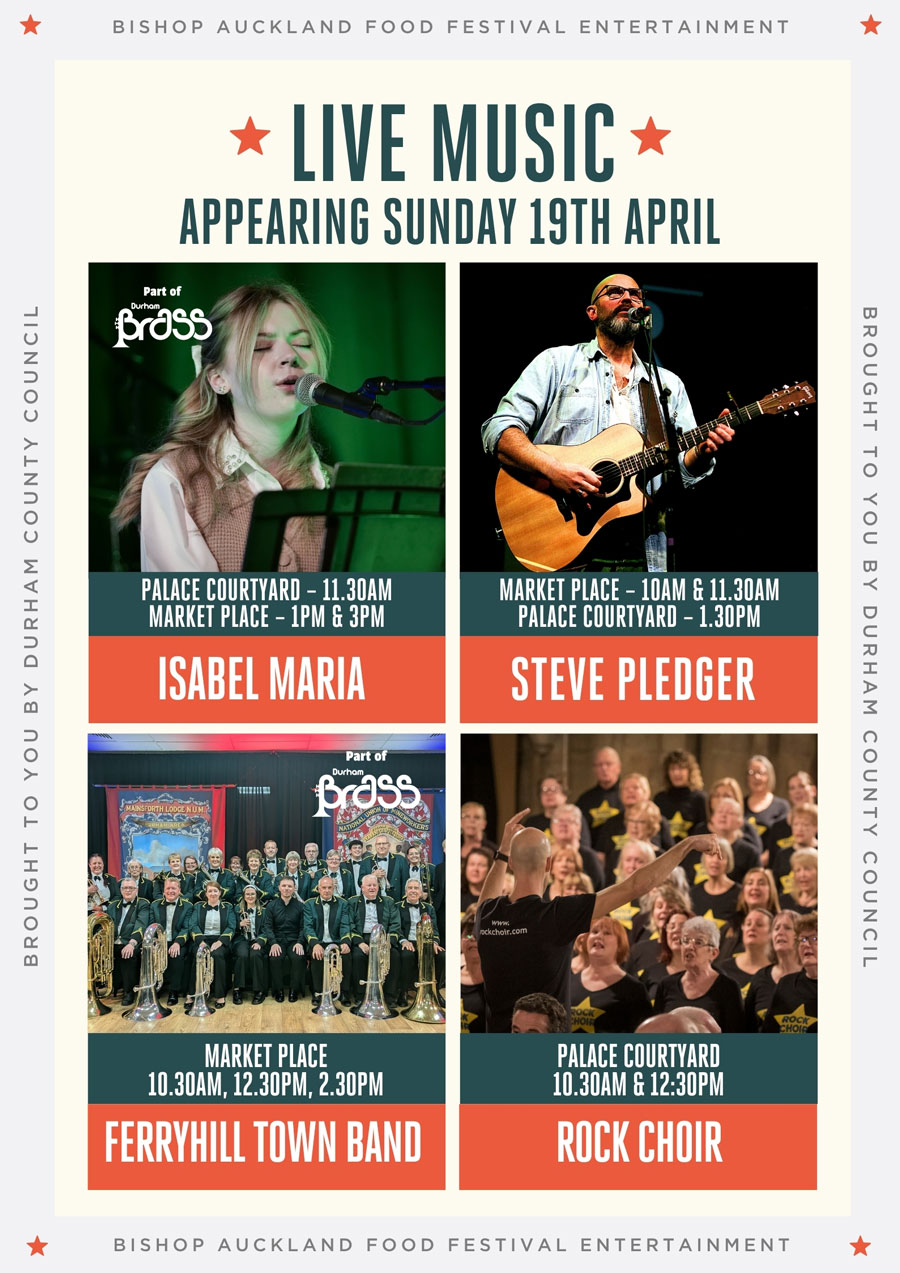 There’ll be live music from Mick Arnell, Tyne Valley Big Band, Spennymoor Town Band, Steve Pledger, Ferryhill Town Band, Isabel Maria and Rock Choir.