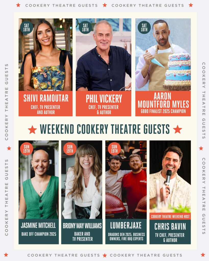 If you’re a fan of TV cookery shows, you’re sure to see some familiar faces. The Cookery Theatre will play host to a packed programme across the weekend, with top tips and techniques along with great bakes. Saturday guests include TV favourite Phil Vickery, Shivi Ramatour, star of Jimmy and Shivi’s Farmhouse Breakfast, as well as finalist from 2025 Great British Bake-Off, Aaron Mountford-Myles. On Sunday, the stage will be ready for Briony May Williams, previous Bake-Off contestant and now presenter of Escape To The Country; last year’s Bake-Off winner Jasmine Mitchell and finally Lumberjaxe, who came to the nation’s attention when securing investment on Dragon’s Den. Hosting them all across both days will be Chris Bavin, who has an impressive resume of TV appearances, including co-presenting Eat Well for Less?