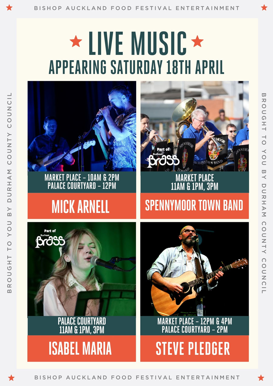 There’ll be live music from Mick Arnell, Tyne Valley Big Band, Spennymoor Town Band, Steve Pledger, Ferryhill Town Band, Isabel Maria and Rock Choir.